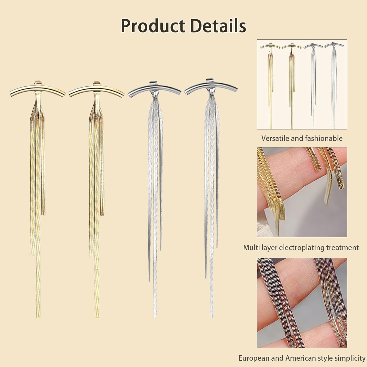 Enhance your jewelry collection with these elegant long earrings for women stylish. The unique snake bone design in golden and silvery offers a fashionable statement piece that complements various outfits. Made from high-quality alloy, these earrings are lightweight, durable, and suitable for sensitive skin. Each set includes 2 pairs of 3cm x 11cm earrings, providing versatility for different occasions. Whether for daily wear or special events, these earrings add a touch of sophistication to your look.