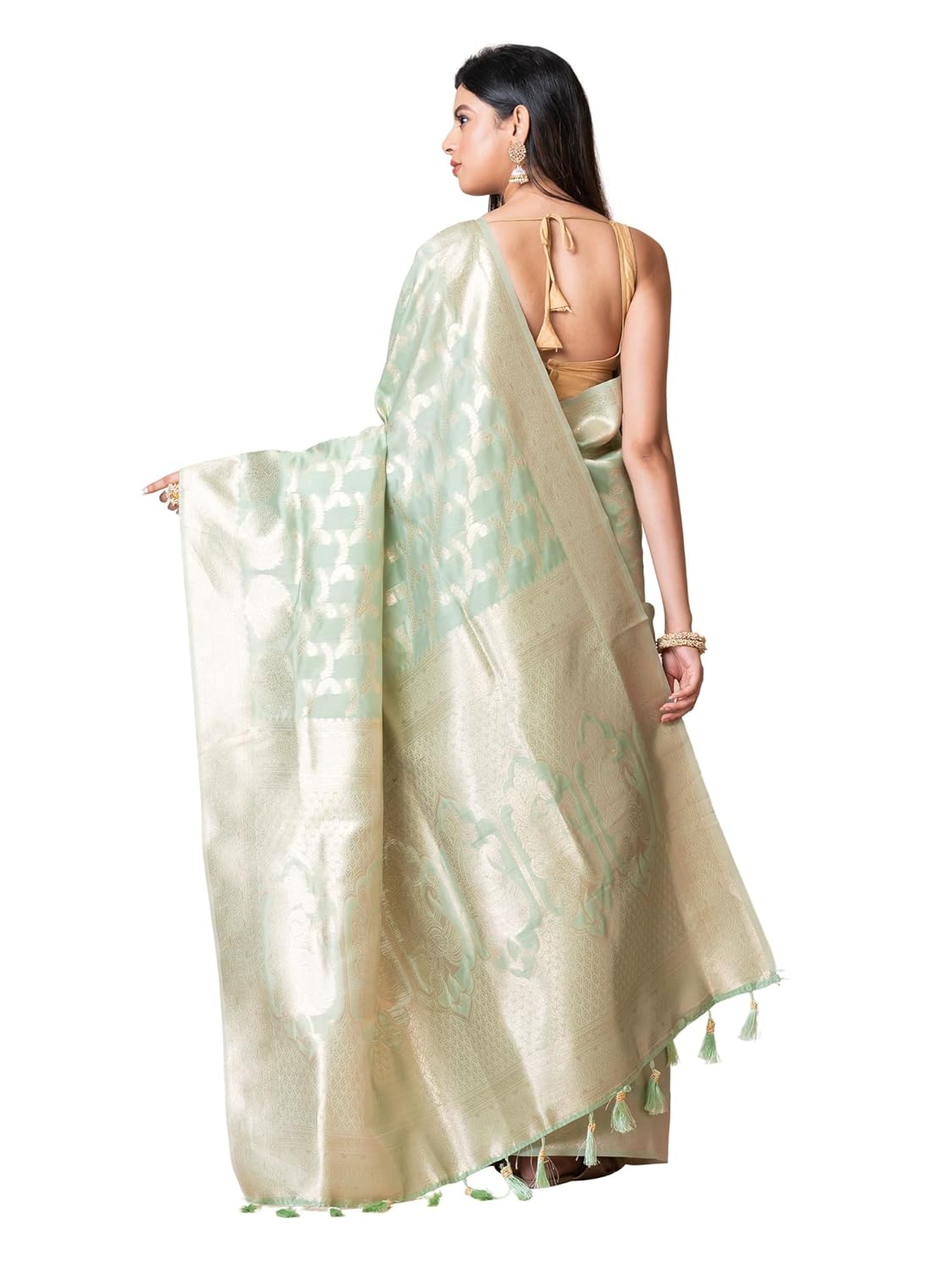 Handwoven by skilled artisans from Banaras (Varanasi), ensuring authenticity and attention to detail.The saree carries the hallmark of centuries-old Banarasi weaving techniques, making it an heirloom piece.