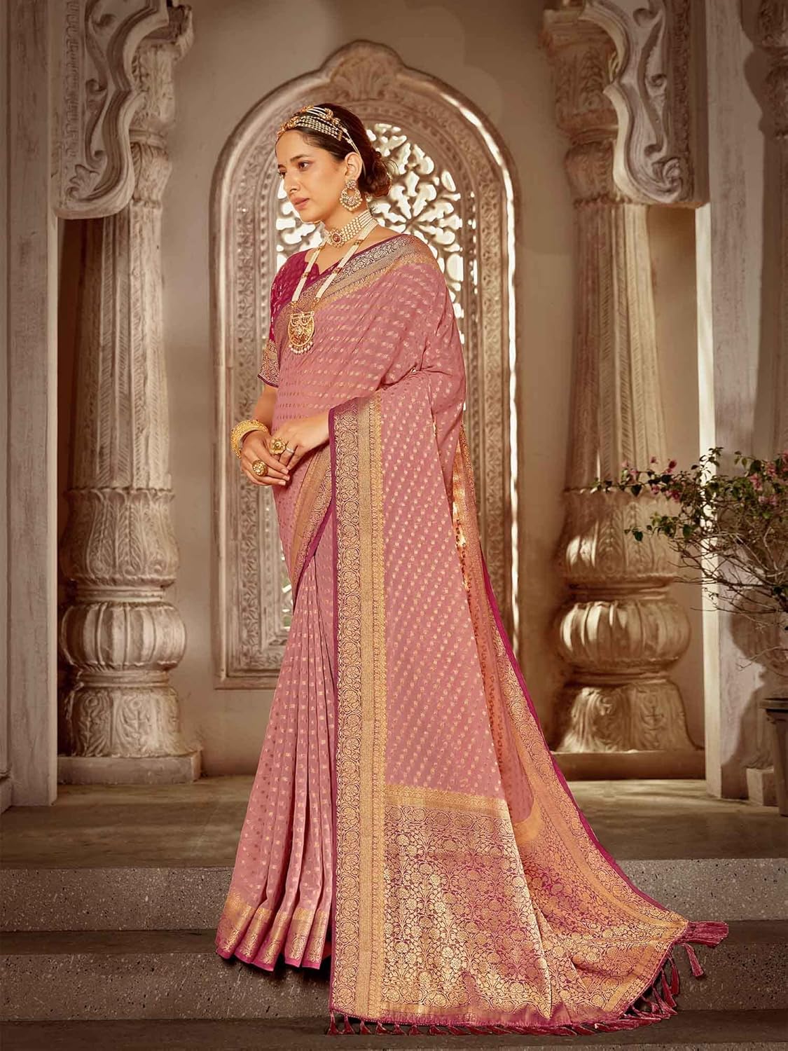 Generic Name : Georgette Kanjeevaram Woven Design Saree