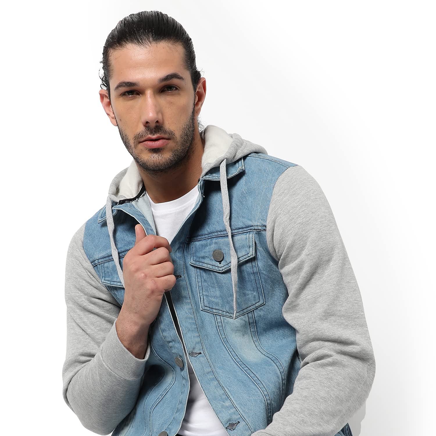 Campus Sutra Men’s Cotton Hooded Standard Length Denim Jacket