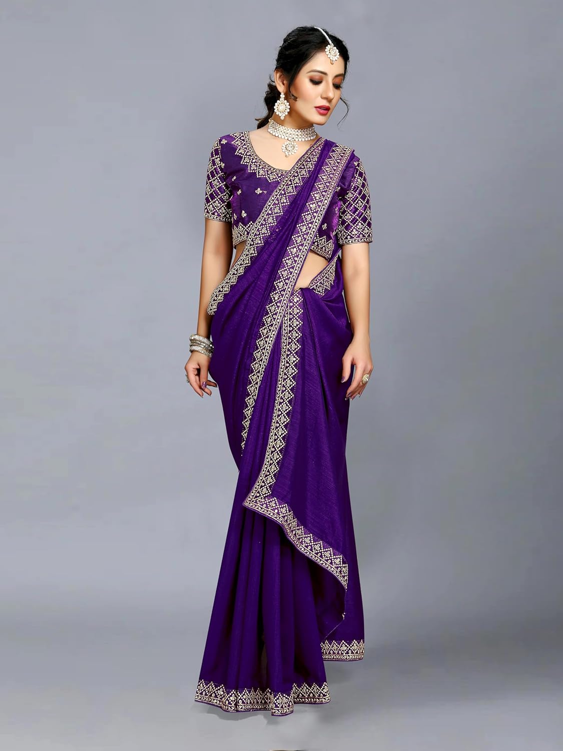 Exquisitely crafted from pure silk, this Madhuri Dixit saree epitomizes grace and elegance. The vibrant green hue is a captivating sight, while the intricate embroidery adds a touch of opulence. Designed to flatter the feminine form, this saree drapes effortlessly, creating an alluring silhouette. Perfect for festive occasions or formal events, this saree is a true masterpiece that will make you feel like a true diva. Pair it with complementary jewelry and accessories to complete the regal look. With its timeless appeal and impeccable craftsmanship, this Madhuri Dixit saree is a treasured addition to any wardrobe. Embrace the beauty of Indian tradition and elevate your style with this exquisite piece. Please note that due to the delicate nature of silk, dry cleaning is recommended for optimal care and longevity. Introducing our stunning Lavender Color Hand and stone work Saree specially crafted to make you shine at every occasion including Diwali Eid Party Wear and Wedding events. This saree is a true embodiment of grace elegance and timeless beauty. The captivating Lavender color of this saree is both enchanting and alluring. It exudes a sense of tranquility and serenity making it the perfect choice for those special moments. The shade complements various skin tones ensuring that you radiate confidence and beauty when draped in this saree. Adorned with intricate handwork this saree is a masterpiece of craftsmanship. The delicate embellishments are meticulously crafted featuring exquisite thread work sequins beads and stones. The handwork adds a touch of glamour and opulence making you feel like a true diva. The fabric chosen for this saree which provides a beautiful drape and a lightweight feel.Comes with unstitched blouse fabric. To have the blouse stitched, please select the custom tailoring options. Blouses with elaborate patterns and colors are used for photo-shoot. Color and pattern of the blouse might not be as shown in the image,