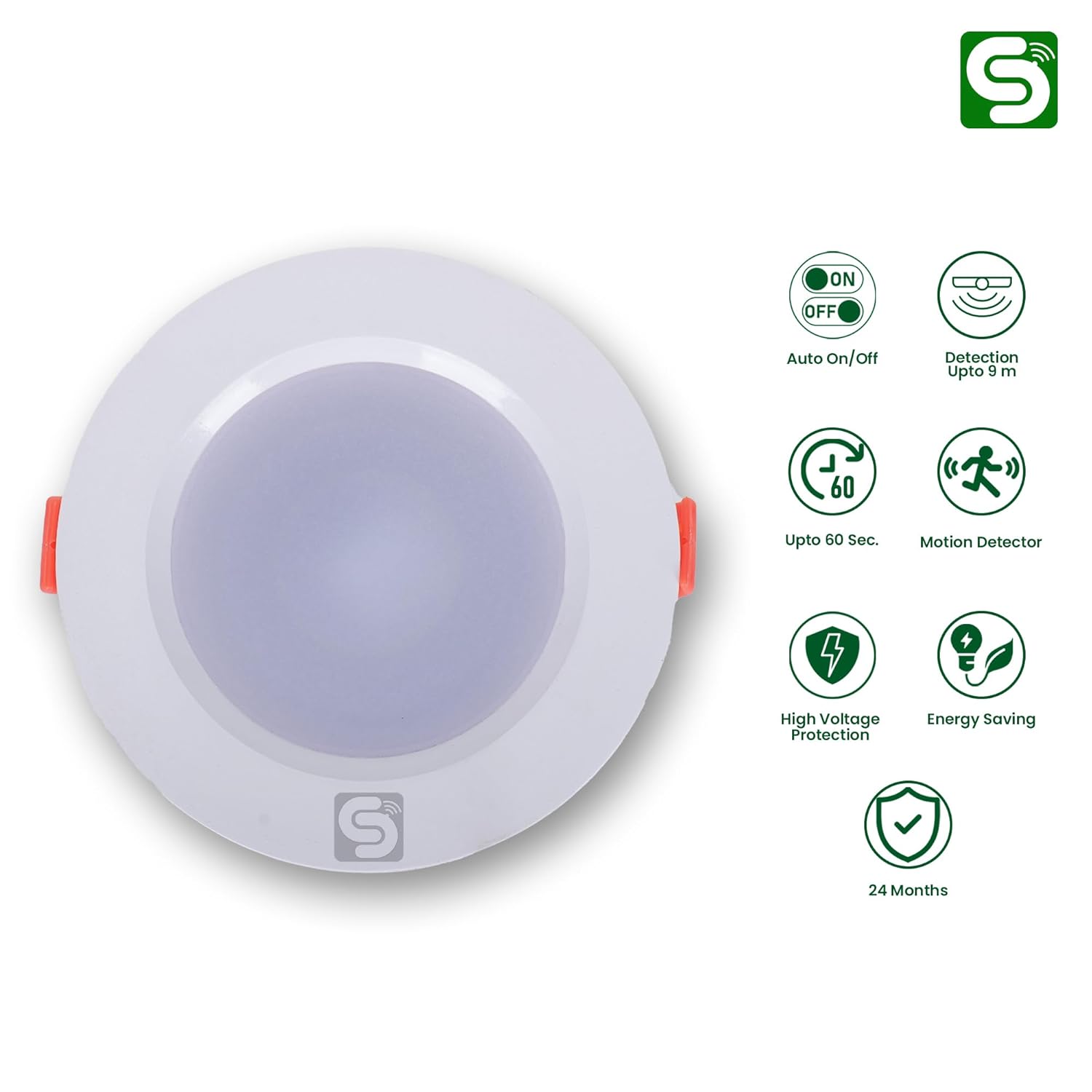 Smart Motion Sensing: The built-in PIR motion sensor detects movement up to 7–9 meters and automatically turns the light ON/OFF, ensuring hands-free operation and excellent energy savings in high-traffic areas.
