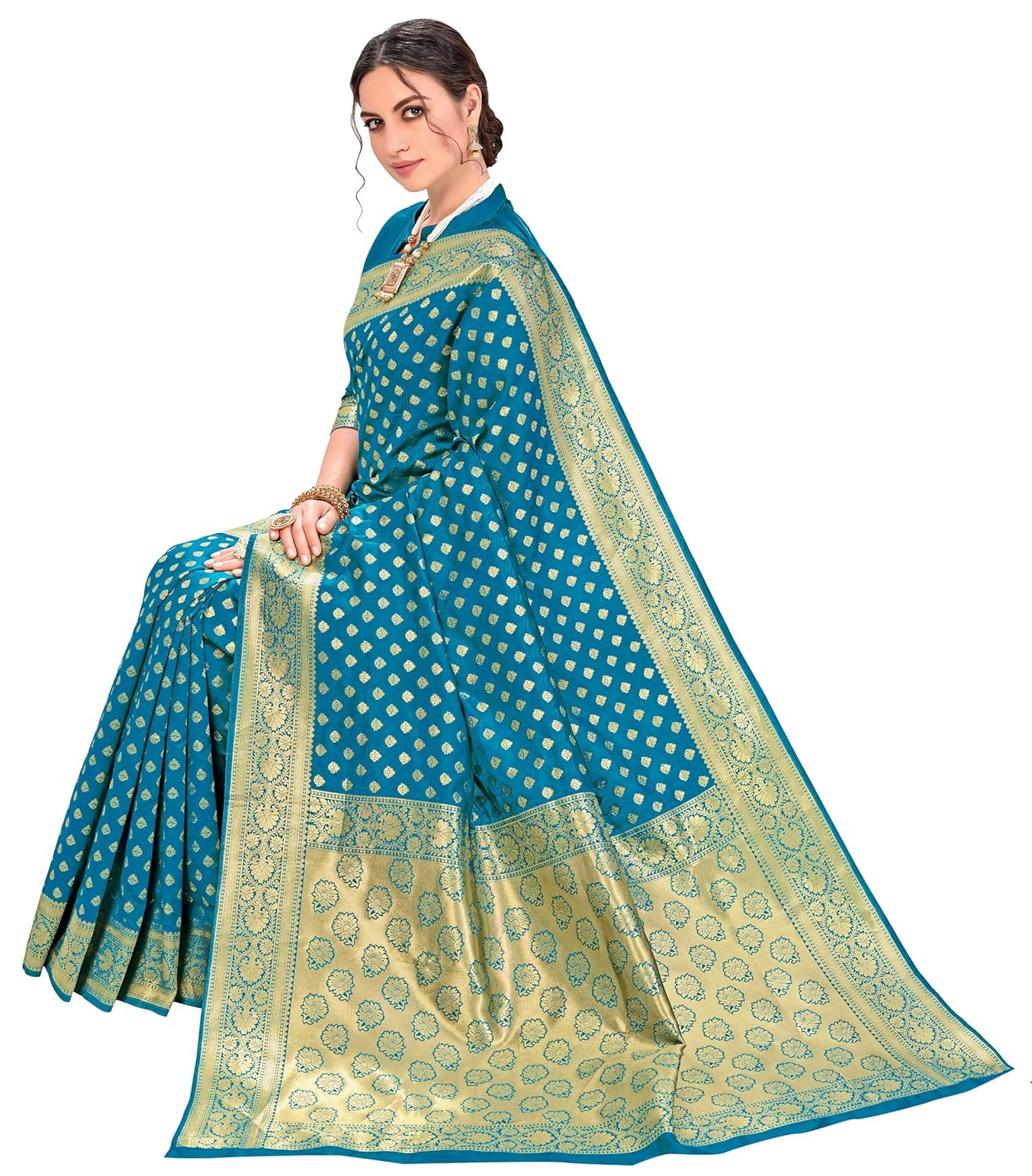 Explore the collection of beautifully designed Saree from Glory Sarees on Amazon. Each piece is elegantly crafted and will surely add to your wardrobe. Pair this piece with heels or flats for a graceful look.