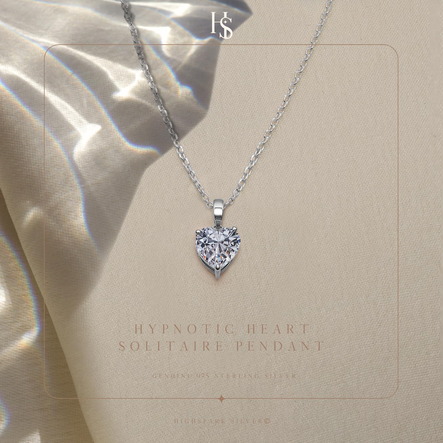 HighSpark 925 Silver Solitaire Heart Pendant with Chain For Women | 92.5 Sterling Silver & Diamond like Brilliance Sparkling Zirconia for that Stunning Shine | Lovely Gift – Silver 9mm