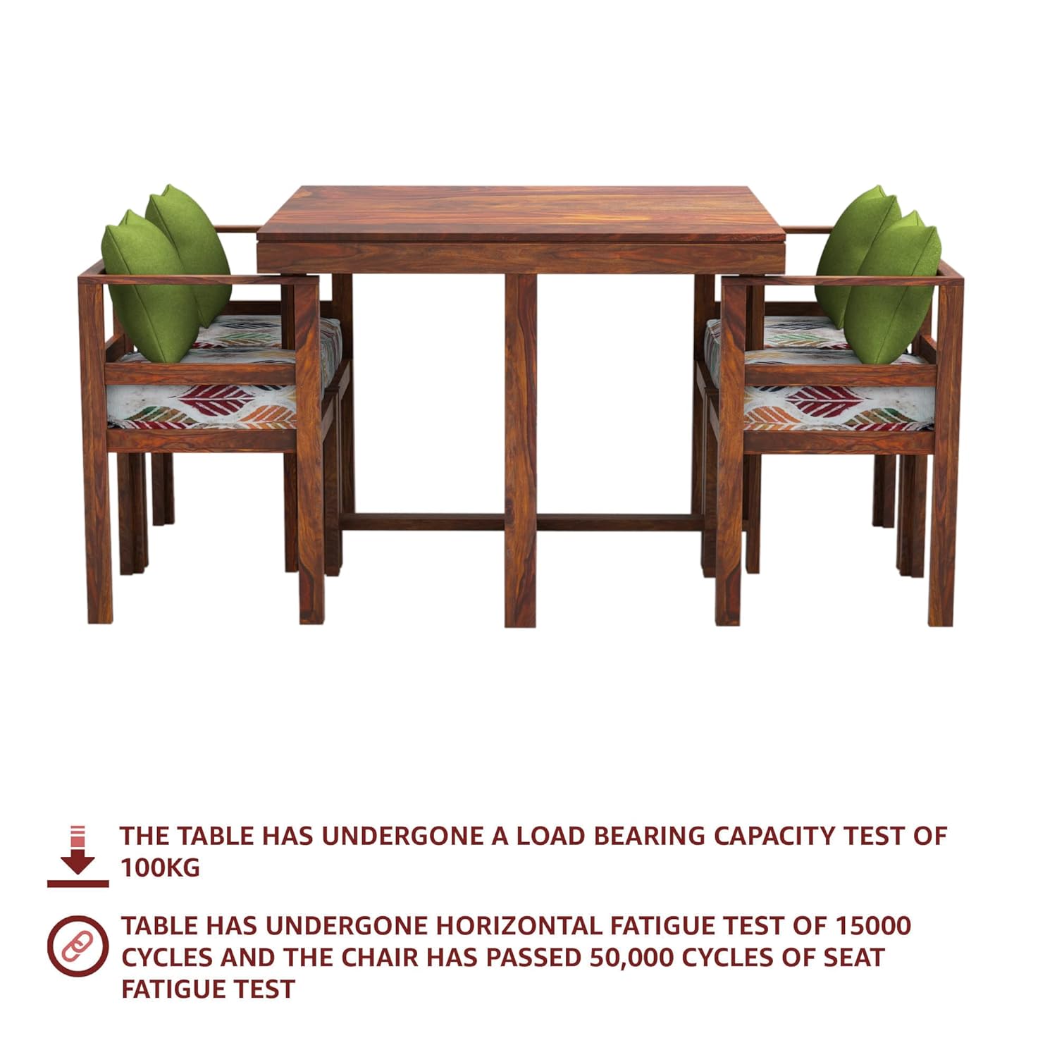 This Dining Table with chair Set is made up of Solid Sheesham wood and ingenious design will refresh your interiors. Dinning Table Chair Set of 4 with its plush look & elegant finish and compliments any existing decor. This Wooden 4 seater dining room sets has an extremely modern contemporary look that helps you to set up a stylish space in your home and living room. Sheesham Wood Dining Table 4 Seater is one stop product to fulfill all your living room needs and requirements while giving a gracious living Style. Elegant and and vintage design of dinning table chair set of 4 makes it well match with many home decoration. The well finished dining table 4 seater with chairs’ design looks very ravishing and admiring and has no rough areas, giving them an alluring look. 4 Seater Dining Table with Chairs are perfect for putting knives and forks, etc. at a meal, cups for tea, coffee, drinks, and things. This Multipurpose Dining Tables can be used as Coffee Table, Breakfast Table, Kids Table, Utility Table. The Rectangle Dining Table set 4 seater with chairs is made up of Solid Sheesham Wood that ensures Stability & Durability. Each Table Wooden has gone through a stringent quality checking process in multi-stages, with a checkpoint of multiple quality aspects.