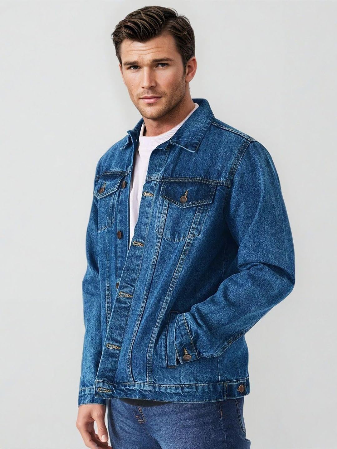 Elevate your casual wardrobe with this Men’s Classic Denim Jacket. Crafted from durable, high-quality denim, this jacket offers both style and comfort. The buttoned front design, along with long sleeves and a regular fit, provides a timeless look that pairs perfectly with any outfit. The jacket also features subtle distressed detailing, adding a modern touch to this classic piece. Ideal for layering, it’s a versatile addition to your wardrobe, perfect for any season.