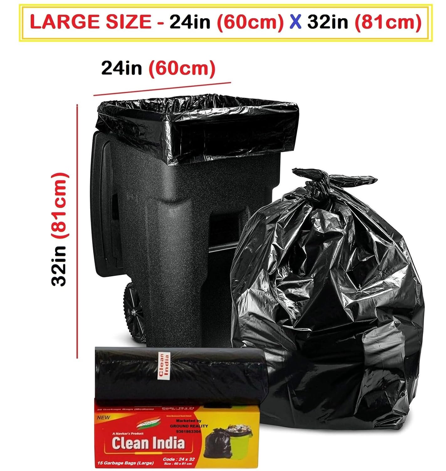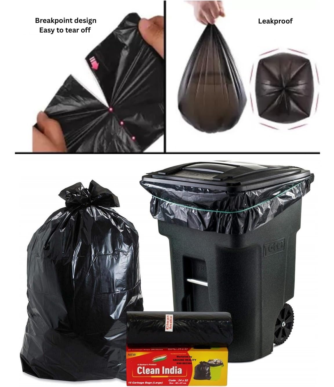 Clean India Garbage bags Dustbin bags Trash bags make cleaning and garbage disposal a hassle-free task while being easy on the environment. The sealed bottom of the bags prevents any leakage, withstands heavy loads, resists tears and makes them sturdy and durable to maintain hygiene. Environmentally friendly Biodegradable reusable garbage bags that can be used multiple times, reducing waste.