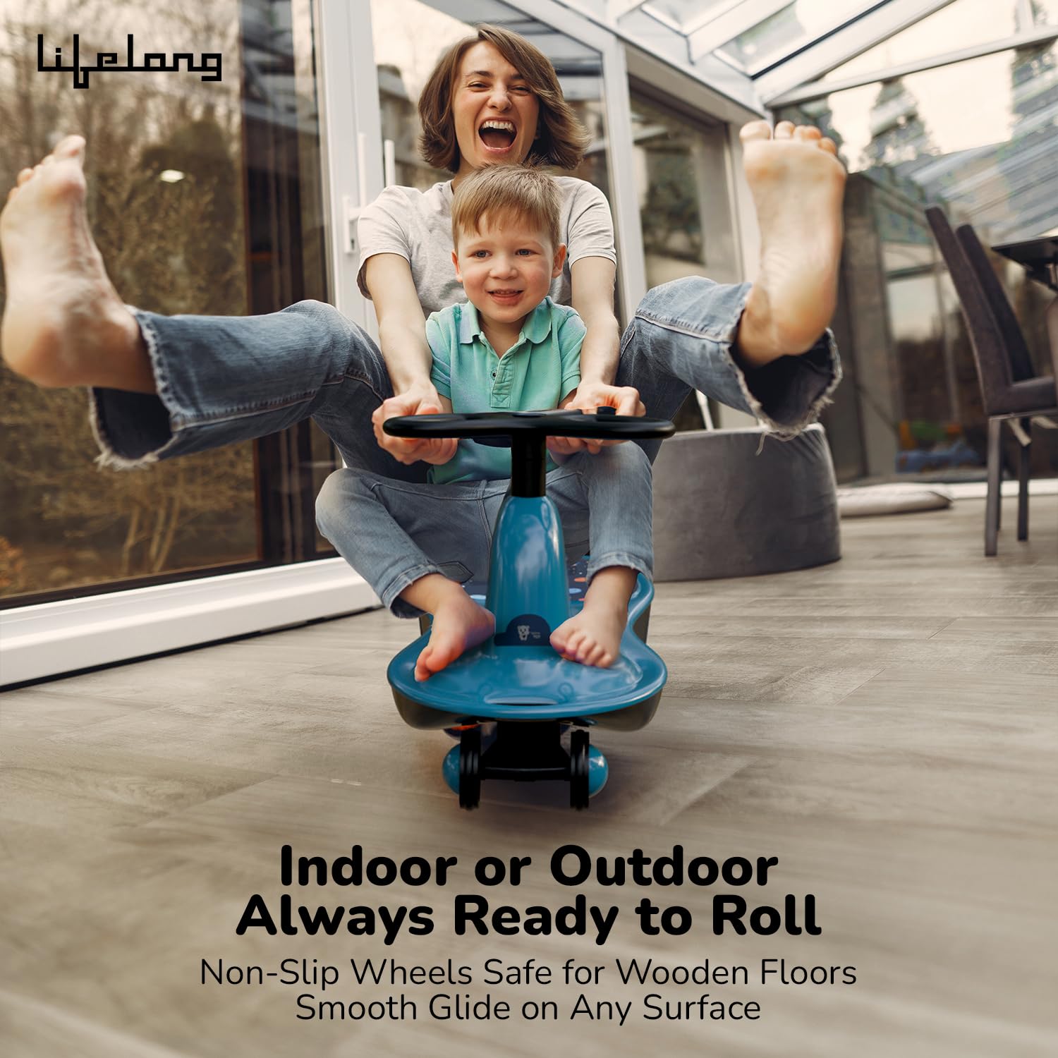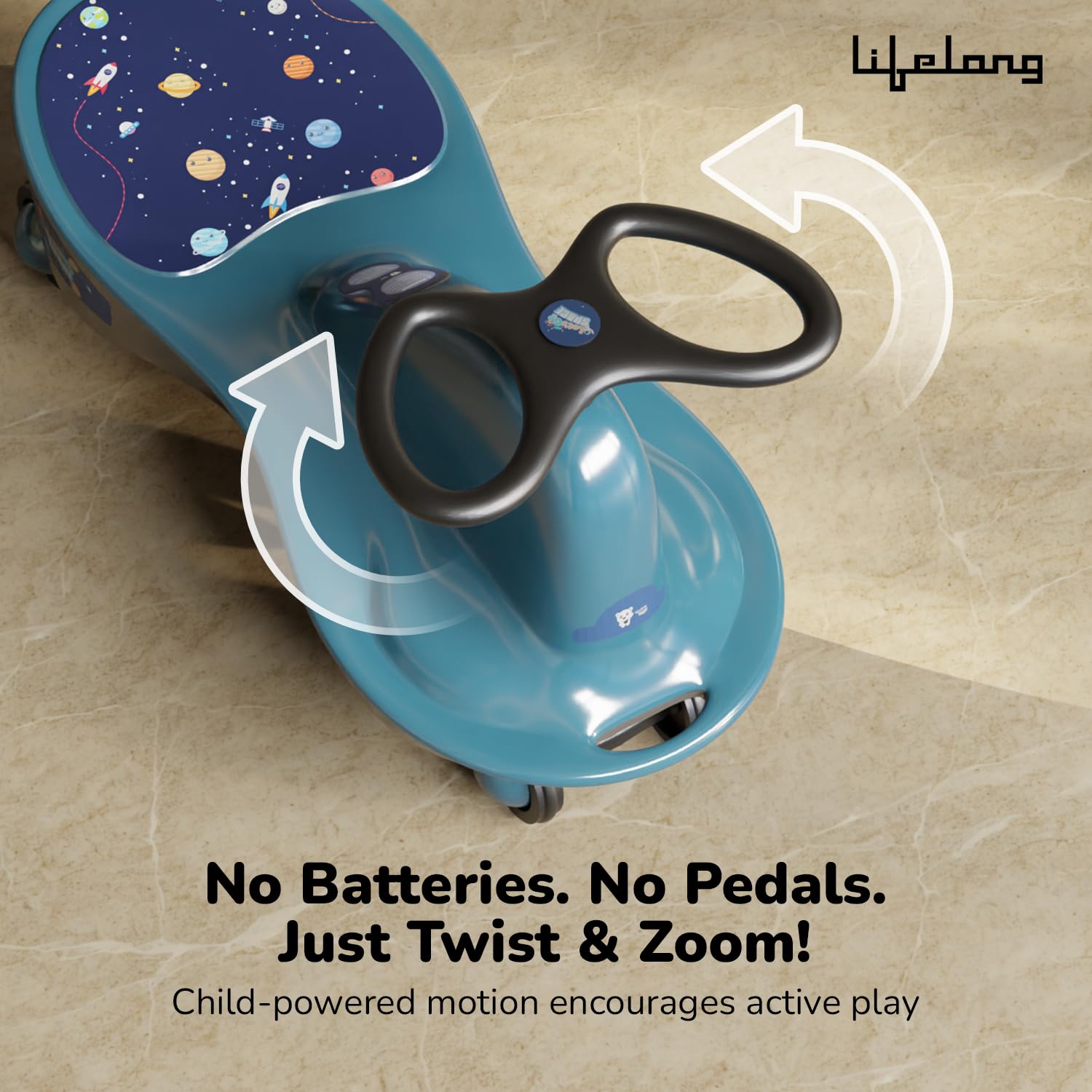 Let your child zoom into fun with the Lifelong Swing Car – a battery-free, pedal-free ride-on toy designed for kids aged 2–5 years. Featuring a unique twist-and-turn steering mechanism, ergonomic curved seat, and smooth non-slip wheels, it offers safe, active play both indoors and outdoors. Made from durable ABS plastic with a fun space-themed design, it’s lightweight, easy to carry, and built to last.