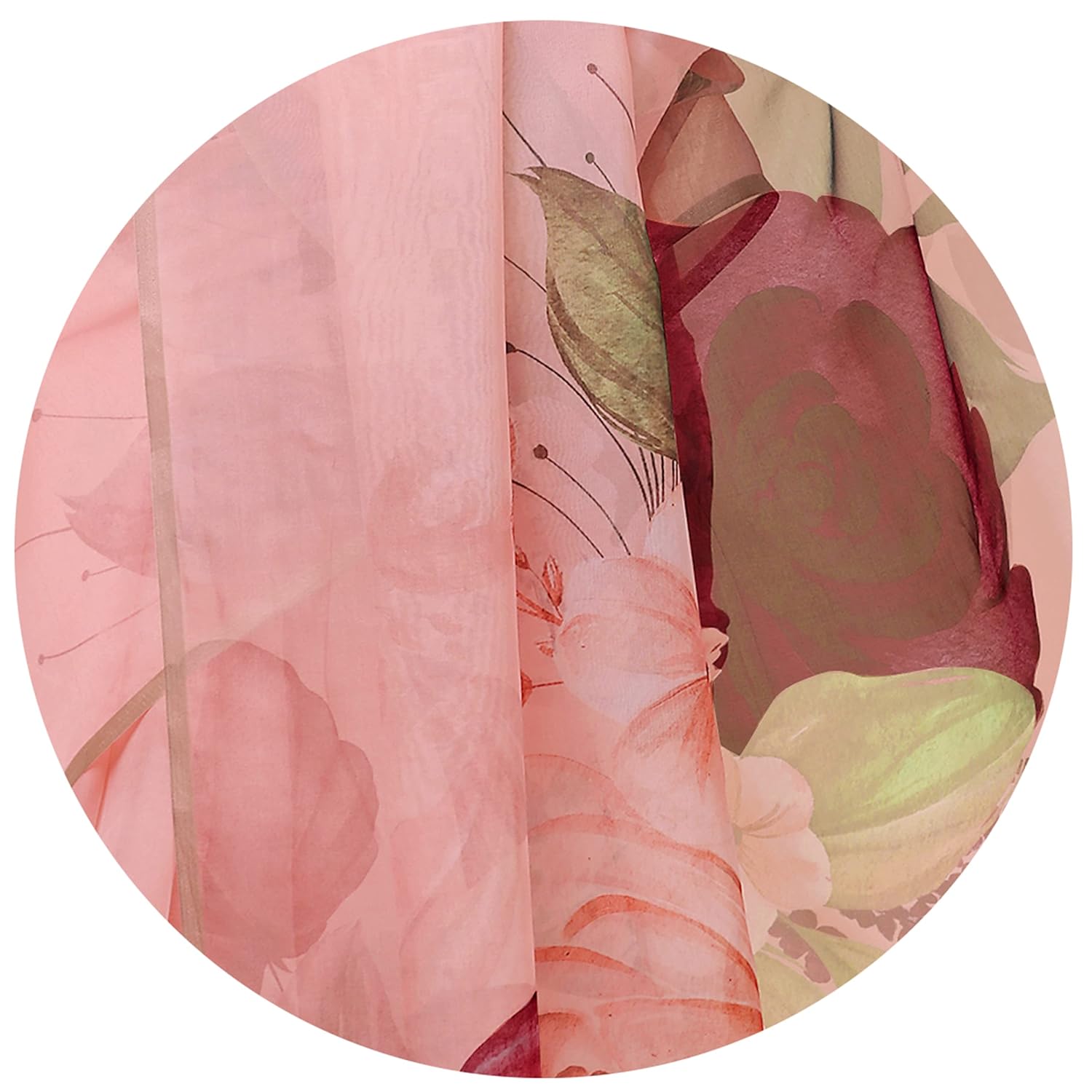 Organza – highly transparent; Chiffon – medium; Faux georgette – medium; Cotton blend – medium; Silk blend – low
