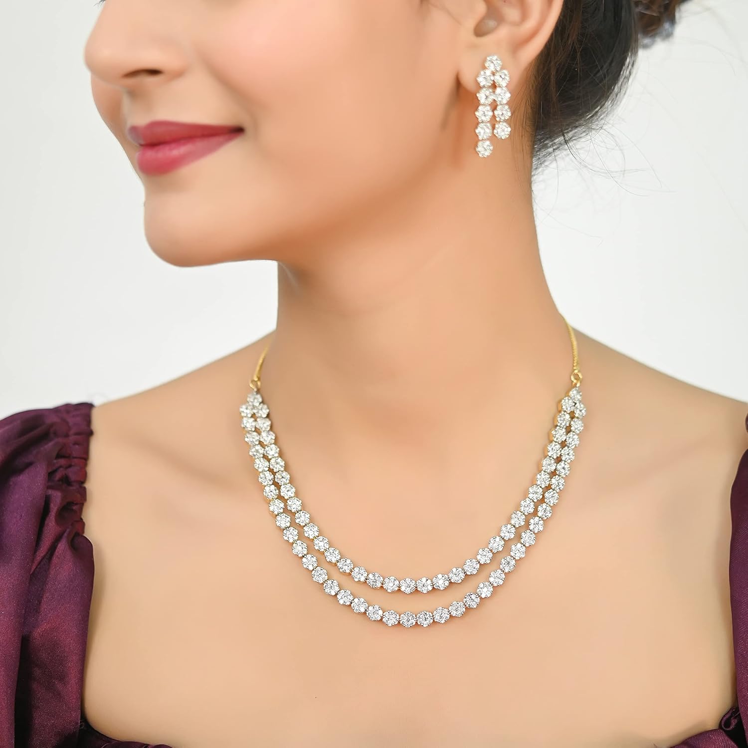 This American Diamond Necklace Set adds a beautiful and simple sparkle to any occasion such as proms, parties and dates. This set is a perfect gift for your loved ones on special days like Christmas, Mother’s Day, Birthdays, Anniversaries etc. You can pair it with any outfit and make every occasion a special one.