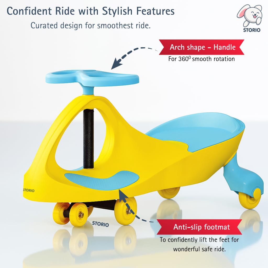 This kids’ swing car boasts premium designs in vibrant colors and shapes. Built with high-quality materials and PU wheels for a smooth ride, it offers spacious seating for comfort. Ideal for indoor and outdoor play, it helps develop balance and coordination while keeping kids active.