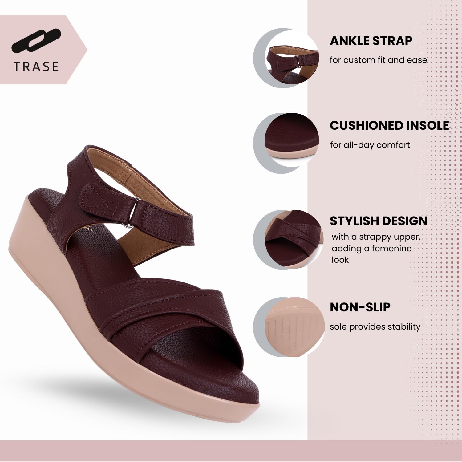 TRASE women’s casual wedges heel sandal is an epitome of style and comfort, crafted to elevate your everyday attire. Made from premium synthetic material, these sandals are not only durable but also lightweight, ensuring long-lasting wear. The PU sole offers excellent grip and flexibility, making them suitable for various surfaces and ensuring a comfortable stride. Designed with a practical back strap, these sandals provide additional support and a secure fit, allowing you to walk with confidence and ease. Featuring a 1.5-inch wedge heel, they add just the right amount of lift to enhance your casual outfits without compromising on comfort. Available in a variety of versatile colors including black, brown, and pink, the Trase wedges heel sandals can effortlessly complement a wide range of casual wear. Whether you’re heading out for a day of shopping, meeting friends for brunch, or enjoying a leisurely stroll, these sandals are an ideal choice. Their stylish design and practical features make them a must-have addition to your footwear collection, offering a perfect balance of fashion and functionality. Step out in style and comfort with these chic and versatile wedges heel sandals from Trase.