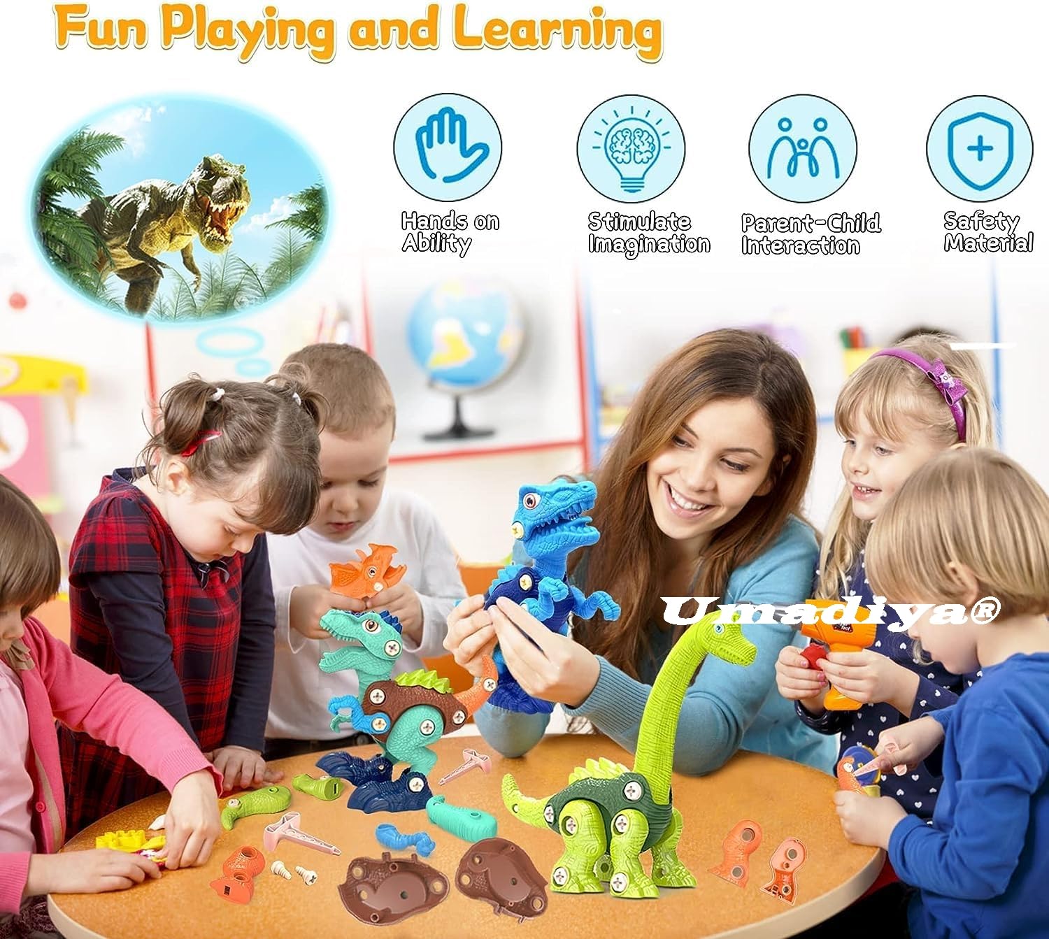 Umadiya Dancing and these dinosaurs are endlessly enjoyed as kids take them apart, put them back together, and immerse their attention with pretend play