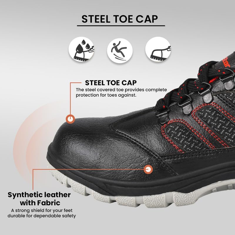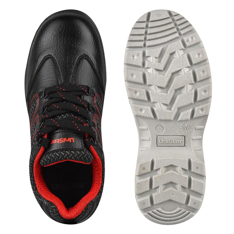 Unistar Men’s Leather Safety Shoe Non-Slip for Industrial Work Boot Waterproof Steel Toe Footwear Indestructible Construction Slip Resistant Shoes (Black)