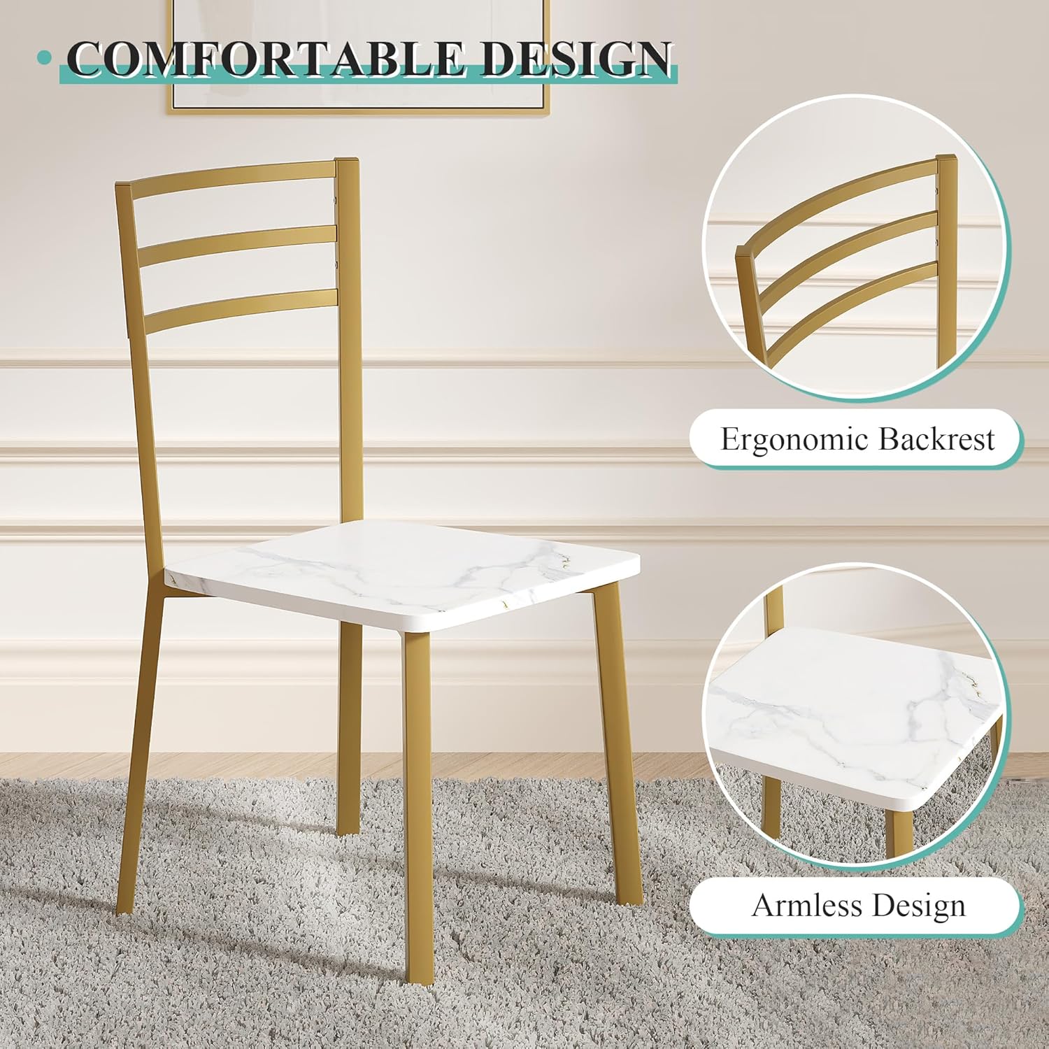 Elegant Dining Table Set – Some of our best memories are created at our dining tables. This 3 piece dining room table set with a marbling tabletop and gold frame, will blend perfectly into your living room and kitchen, bringing simplicity and elegance.