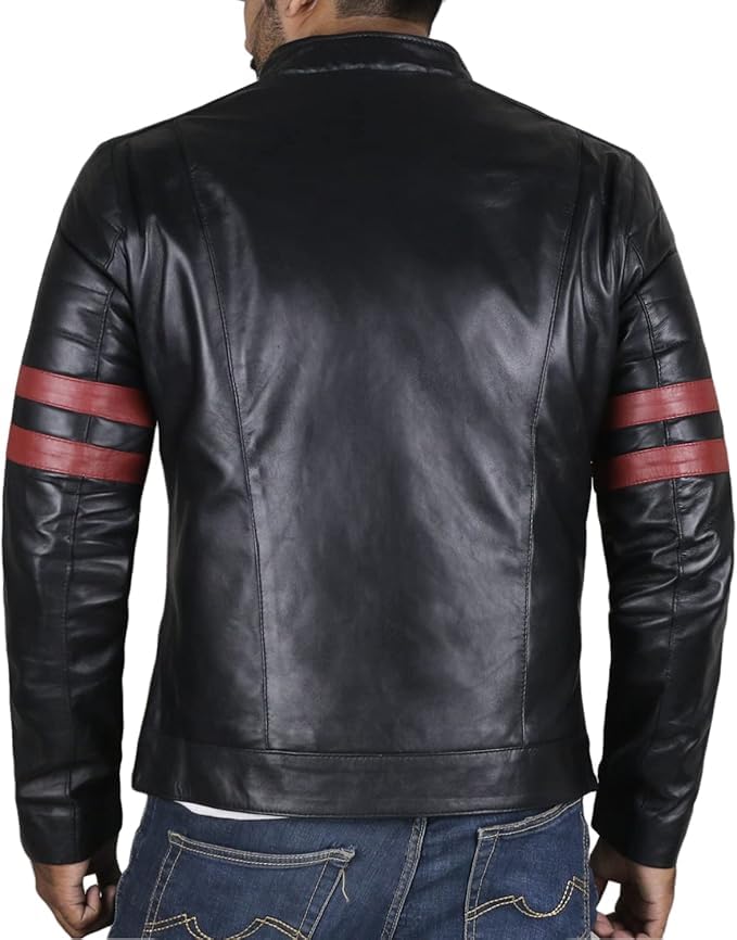 Elevate your style with the Men’s Red Stripe Genuine Leather Jacket, designed for those who appreciate classic biker aesthetics and premium quality. Crafted from 100% genuine leather, this jacket offers durability and a luxurious feel that only gets better over time. The bold red stripes along the sleeves add a stylish touch to a timeless silhouette, making it perfect for adding a modern edge to any outfit.